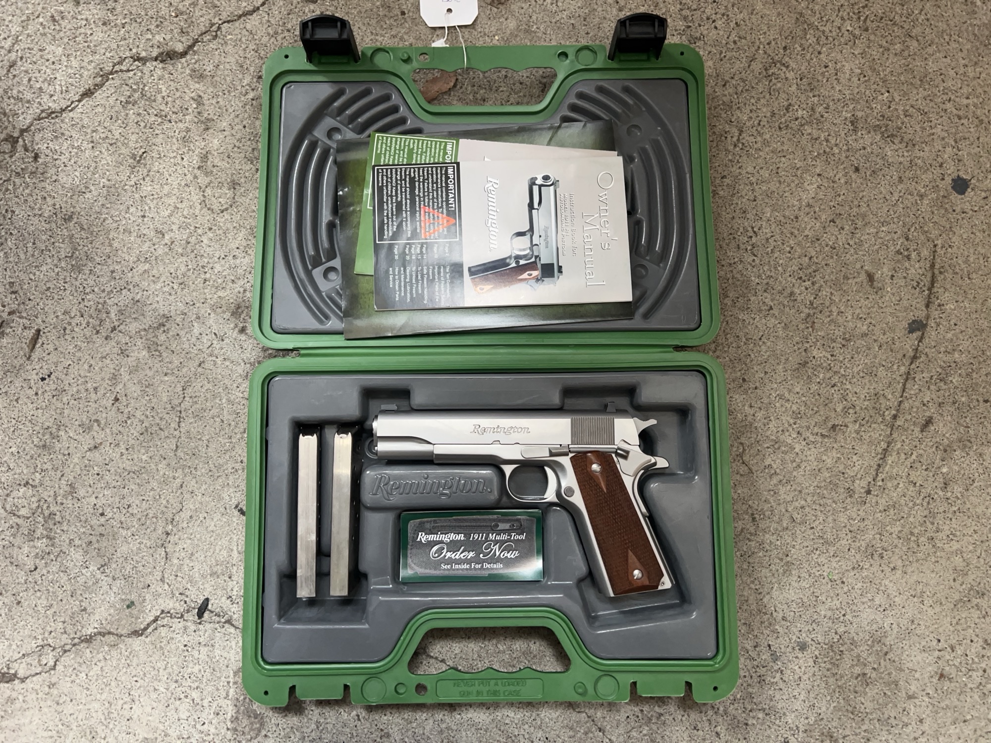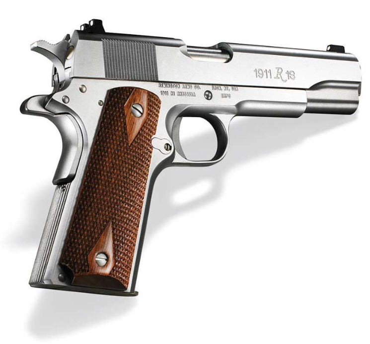 All the features of the 1911 R1, but with the enhanced durability and visual appeal of a stainless steel finish. Features two-dot dovetailed rear sight with single-dot front sight, G.I. thumb safety, grip safety and hammer, and two 7-round magazines.