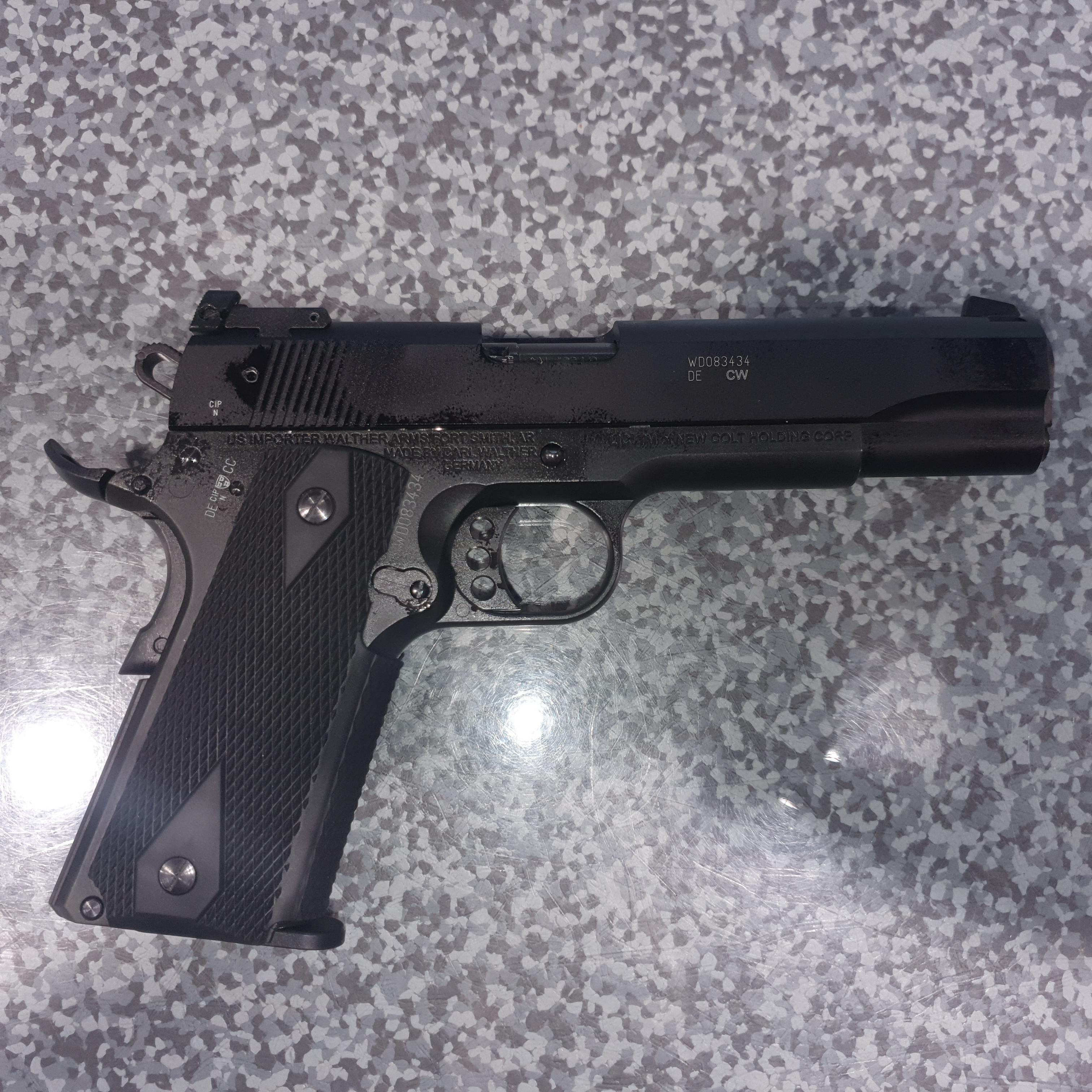 This is an excellent example of a Colt Gold Cup .22LR made by Walther under licence. It comes with the original case and papers. Grab a cost effective version of the iconic 1911 and have some fun at the range.