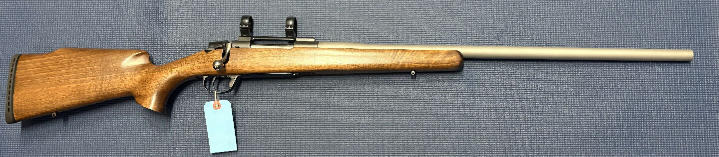 Antonio Zoli ZA1900 in 25-250. Bull barrel. Rings ready for a scope. Woodwork is in very good to excellent condition. Excellent Condition.