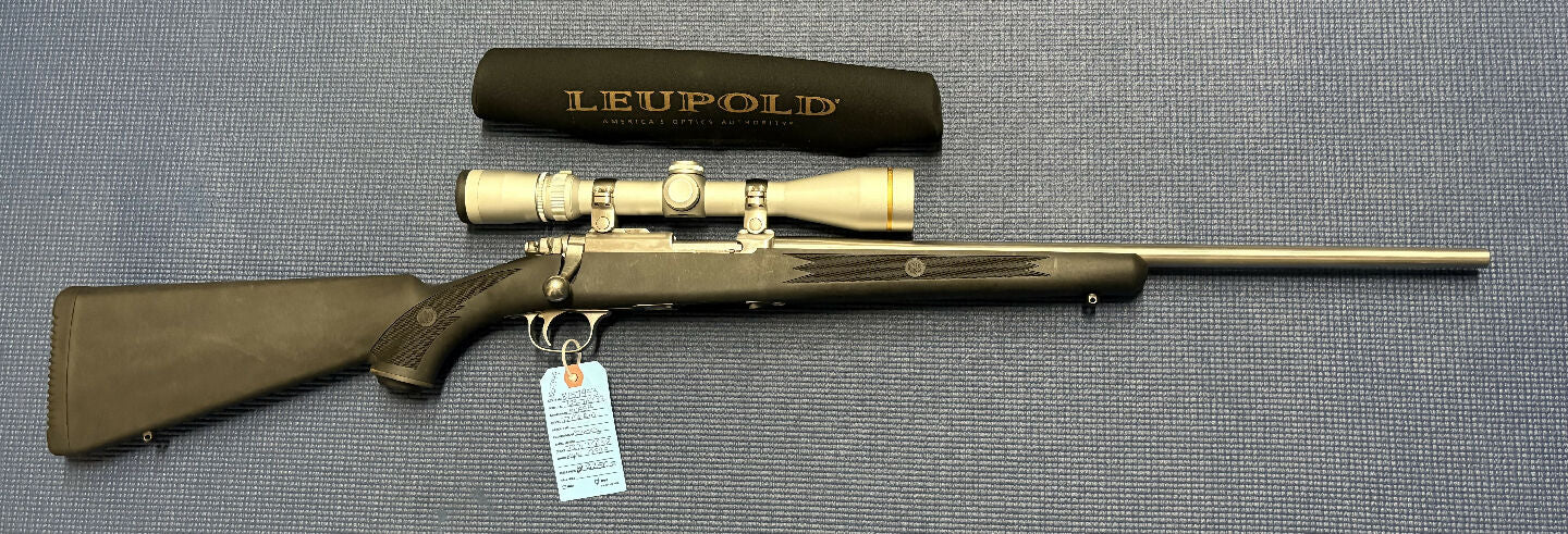 Very good condition Ruger 77/22 in 22WMR. Cycles great, has a Leupold VX-3 3.5-10x40 scope mounted.